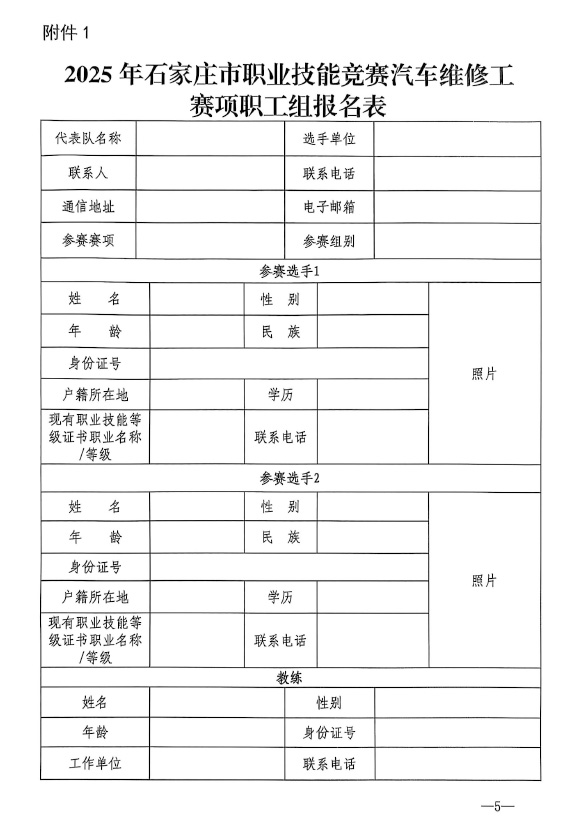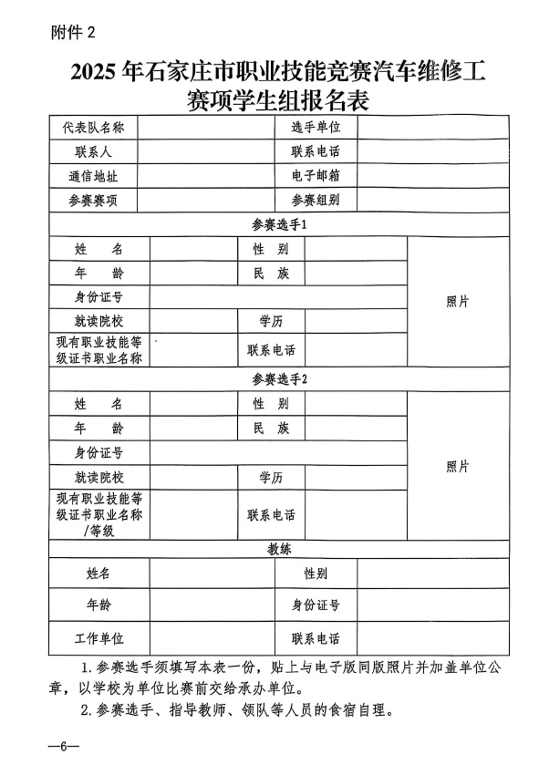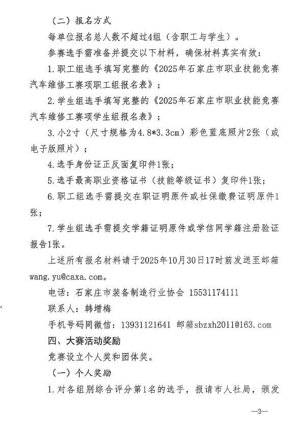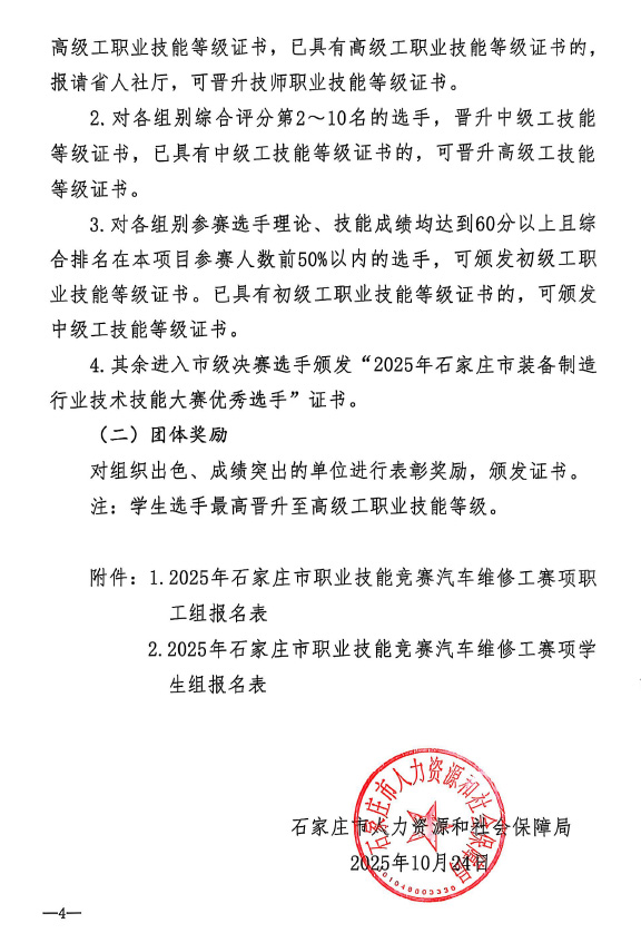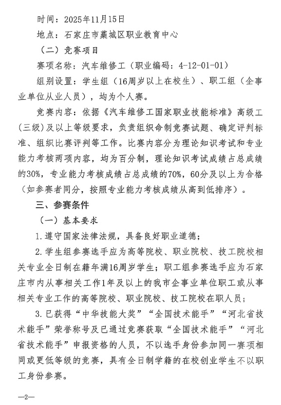石家庄市人力资源和社会保障局关于举办2025年石家庄市汽车维修工职业技能竞赛的通知